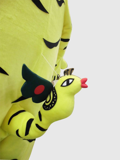 ばんトラくんの尻尾を下がらない様、持ち上げて固定しています。