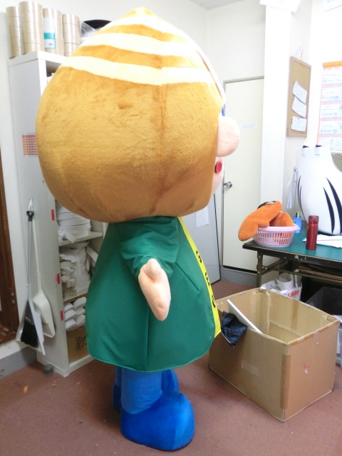 80周年記念式典で華々しくデビューしたジオっちょは、3月17日(日)には銚子市内にあるウオッセ21で行われた、ライバル・ちょーぴー(キャベツ畑で発見され商議所会館に住み着いた謎の生物で、銚子市商工会議所キャラクター。)の撮影会になんと飛び入り参加